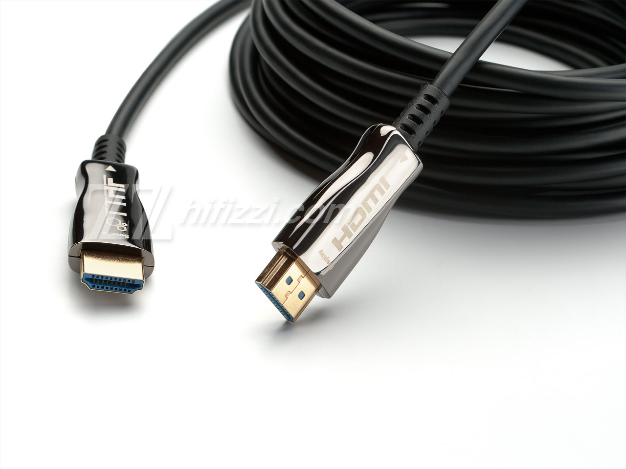 С ростом разрешения медиаконтента растут и требования к кабельной продукции для его передачи. Самое прогрессивное решение для HDMI кабелей - передача сигнала не по медным проводникам (как в кабелях классической конструкции), а по оптоволокну. Такое решение подымает уровень кабеля до уровня остальных компонентов вашей медиа системы, потому что в нем используются электронные преобразователи электрического сигнала в оптический и обратно, микросхемы требуют питания, повышены требования к технологической линии производства и т.д. Но в результате - Вы получаете идеальную картинку без помех и рассинхронизации видео и звука.